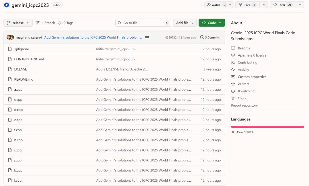 参加ICPC的Gemini 2.5与我们在Gemini应用中使用的模型相同。