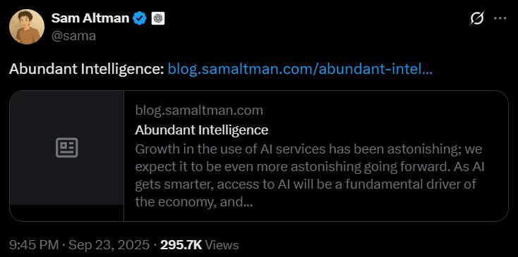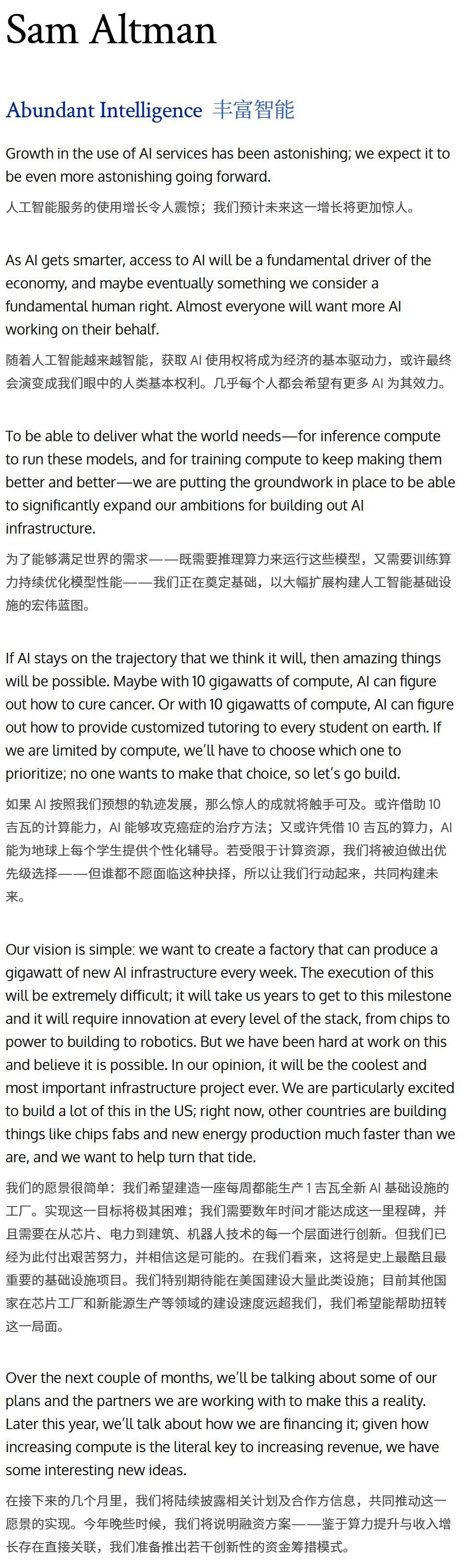 博客地址:https://blog.samaltman.com/abundant-intelligence