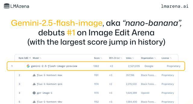 Nano Banana的走红源自此前其以完全匿名身份在LMArena的对战模式中力压GPT-4o、Flux-Kontext等一众顶尖模型,成为图像编辑方向盲测投票第一。其出色的图像生成和编辑能力,让无数用户惊叹不已,甚至大量用户只为能被分配到该模型,而不断地参与平台模型盲测。