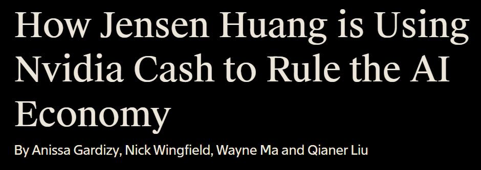 The Information形容英伟达像「AI世界的政府」(https://www.theinformation.com/articles/jensen-huang-using-nvidia-cash-rule-ai-economy),黄仁勋可能比这还多干了一点。