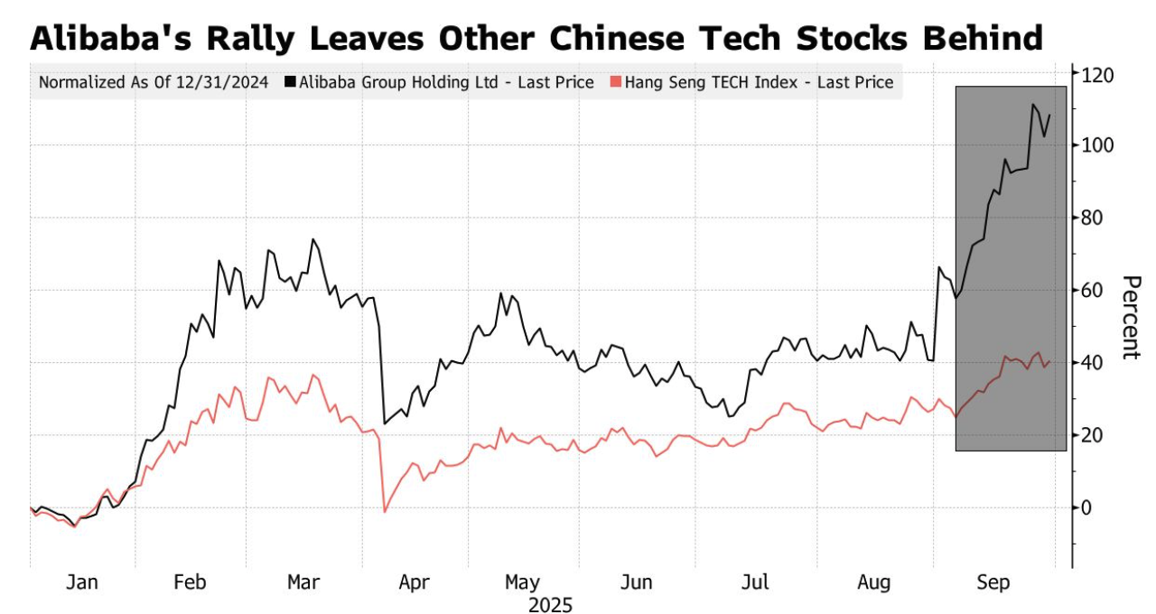 凤凰网科技讯 北京时间9月29日,据彭博社报道,阿里巴巴集团是本月在港交所表现最好的内地科技股之一。随着分析师看好阿里在云计算和AI业务上的增长前景,该公司股价在周一继续上涨。