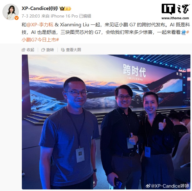 ▲ 小鹏刘先明、李力耘、袁婷婷合照IT之家注意到,今日早些时候有报道称小鹏汽车将于今年的 AI 科技日上宣布在物理 AI 领域取得的“重大突破”,小鹏世界基座模型在对世界进行推演能力上取得“关键进展”。