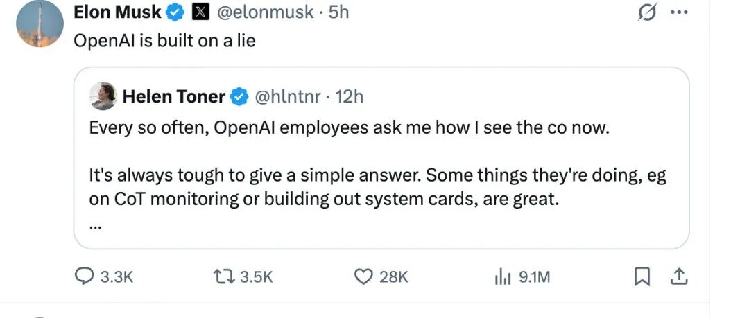 而面对这样的「热闹」,故事中的另一个「主角」自然不会错过。埃隆・马斯克发文评价「OpenAI 建立在谎言之上。」
