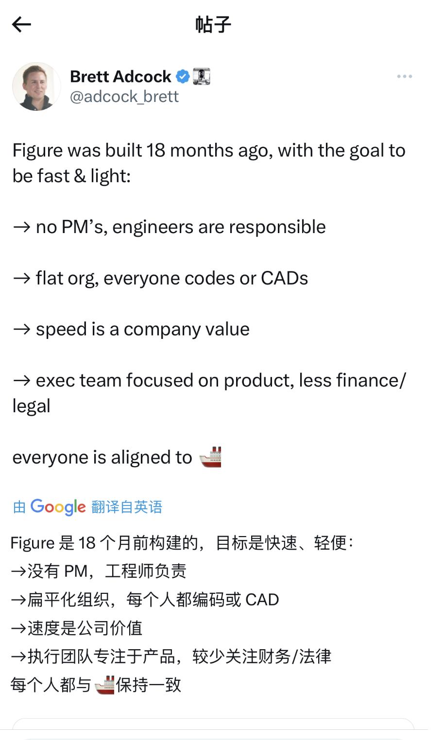 2023年4月,在Figure AI完成7000万美元A轮融资后,Brett Adcock几乎每天在X上更新创业动态。在外界的聚光灯下,Brett Adcock的每一次发布、每一次受访,既是技术展示,也是信号释放——这家公司不只是造机器人,更在构建一个让投资人“看得见未来”的故事。