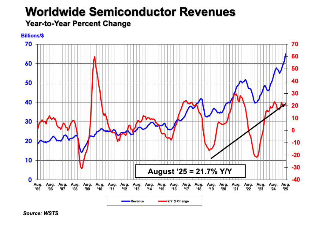 1.SIA:8月全球半导体销售额同比增长21.7%,中国增长12.4%
