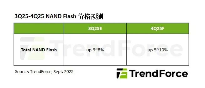 TrendForce最新分析显示,NAND Flash市场正迎来价格上扬趋势,预计第四季度各类产品合约价将全面上涨,平均涨幅达5-10%。这一变化打破了市场原本对第四季度价格将进入盘整的预期。