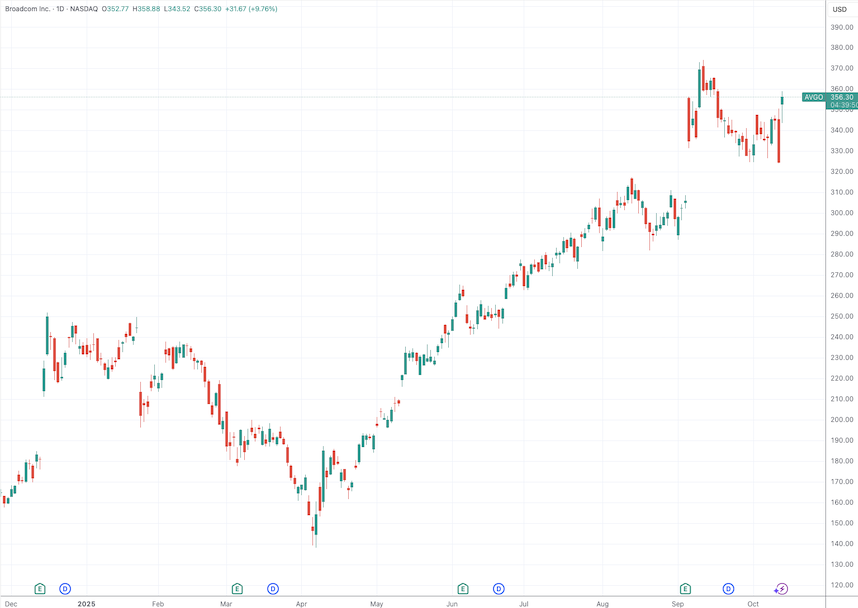 AI龙头与博通发布公告称,两家公司将合作开发10吉瓦规模的定制AI芯片和网络系统机架。受此消息影响,博通股价周一开盘后拉涨近10%,市值劲增超1500亿美元。