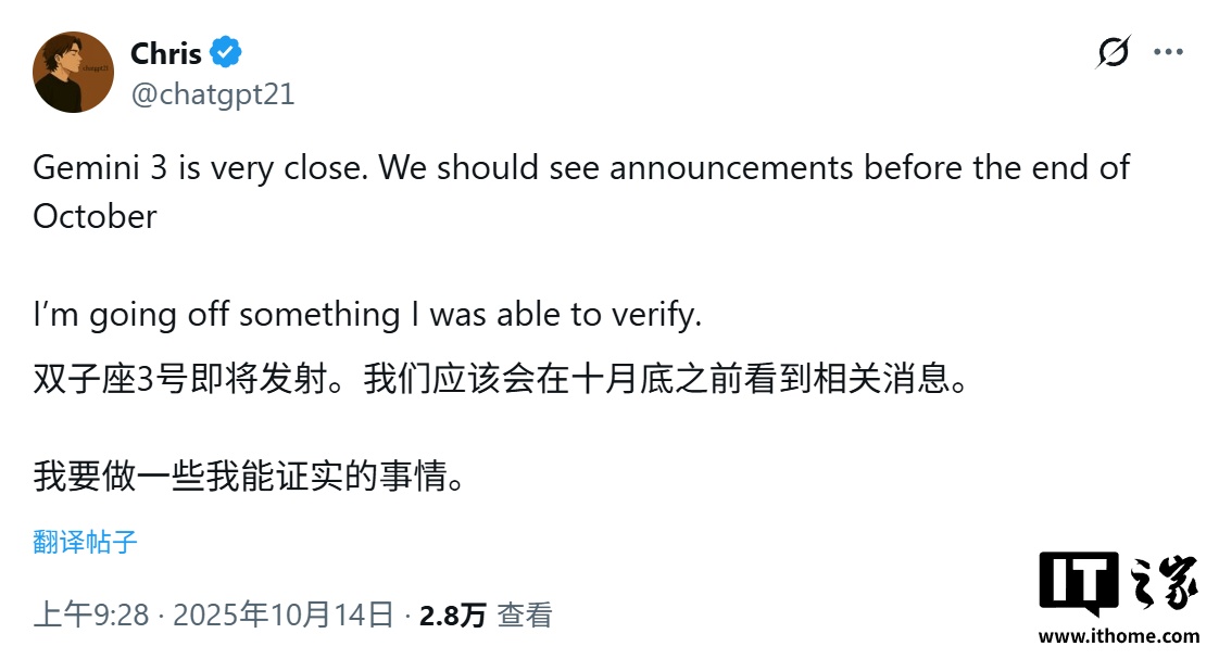 在 OpenAI 于 8 月初发布 GPT-5、Anthropic 于 9 月底推出 Claude Sonnet 4.5 之后,人工智能领域的竞争日趋白热化,行业目光聚焦于另一位重量级选手谷歌,有望于 10 月 22 日发布 Gemini 3.0。