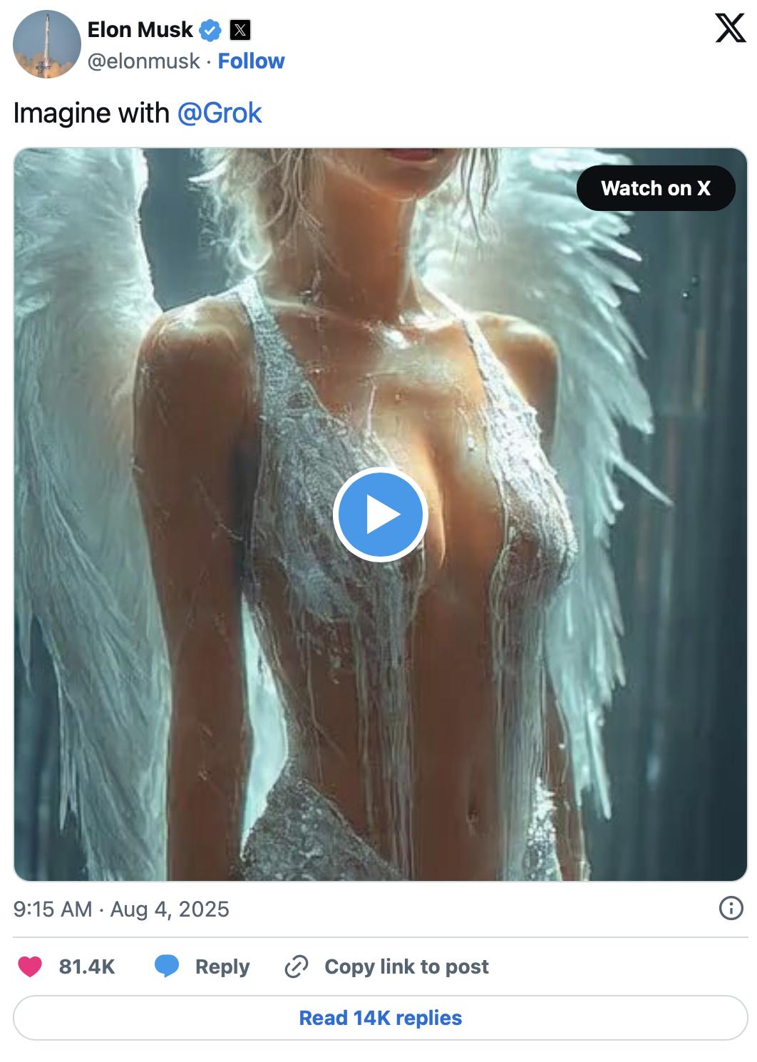 前不久,Grok 就推出多项 NSFW(Not Safe For Work 工作时/少儿不宜)的功能。