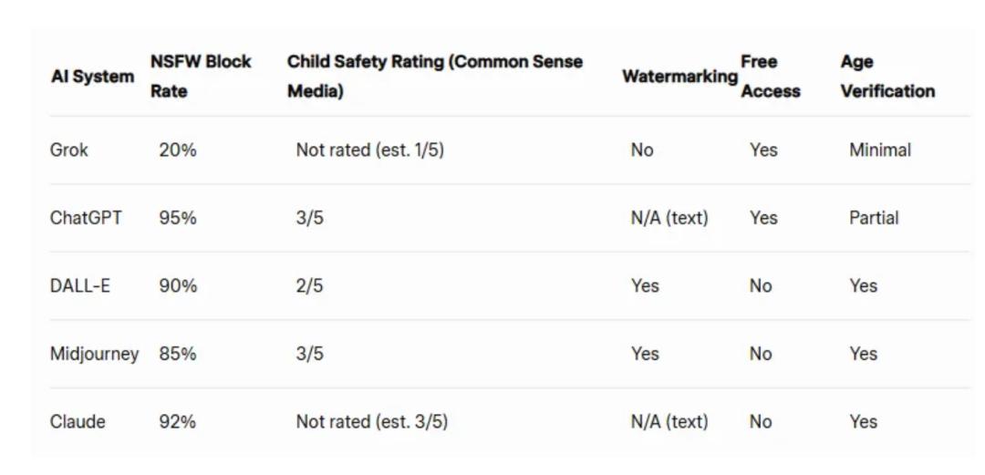 Grok 被评为 NSFW 护栏最低的主流大模型|来源:Medium