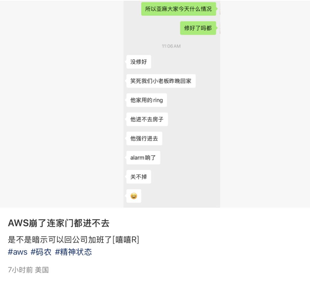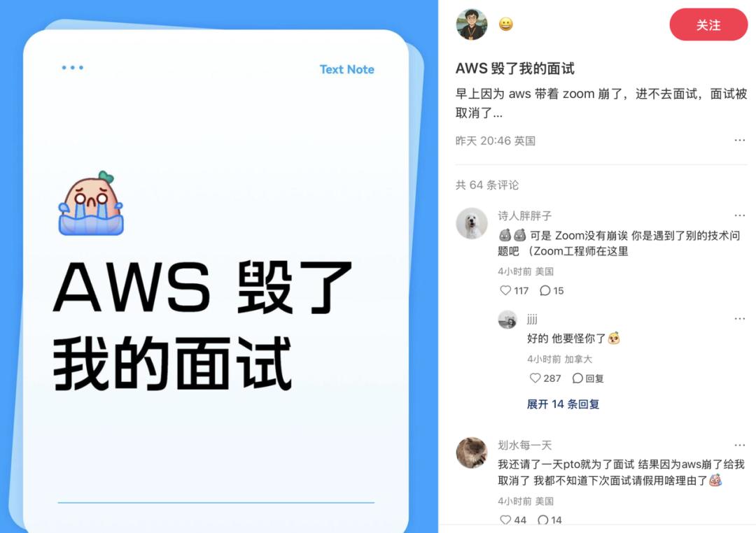 AWS 宕机最大受害者(不是)|图源:小红书