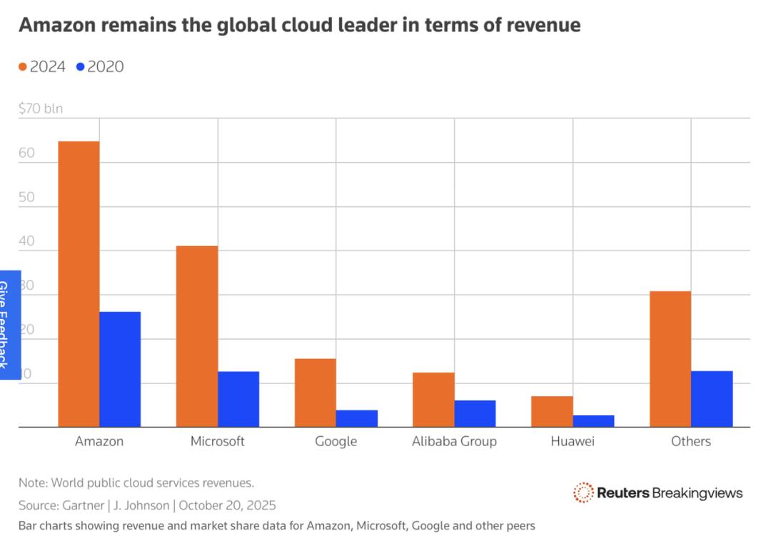 亚马逊在云计算领域的份额|图源:路透社