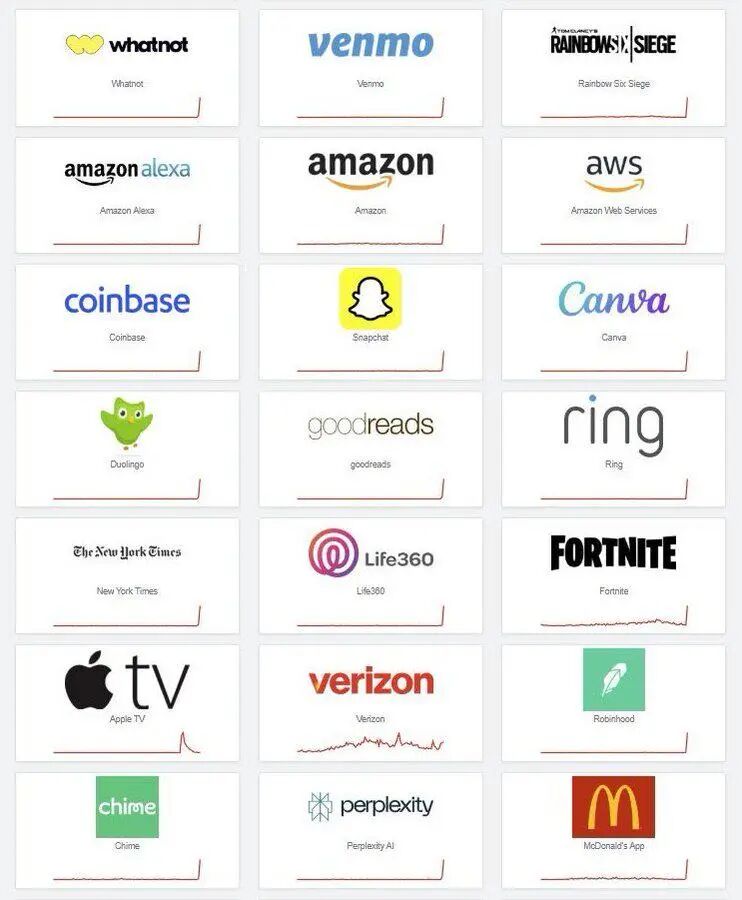 Venmo(PayPal 旗下的支付 app)宕机了,让用户无法付款和转账,小企业主欲哭无泪;Coinbase 加密交易所也中招,用户登录卡顿,交易订单堆积如山;Robinhood 和 Webull 等股票 app 全线崩溃,投资者眼睁睁看着市场波动却下不了单;同时,星巴克、麦当劳的 app 也出现了访问问题。