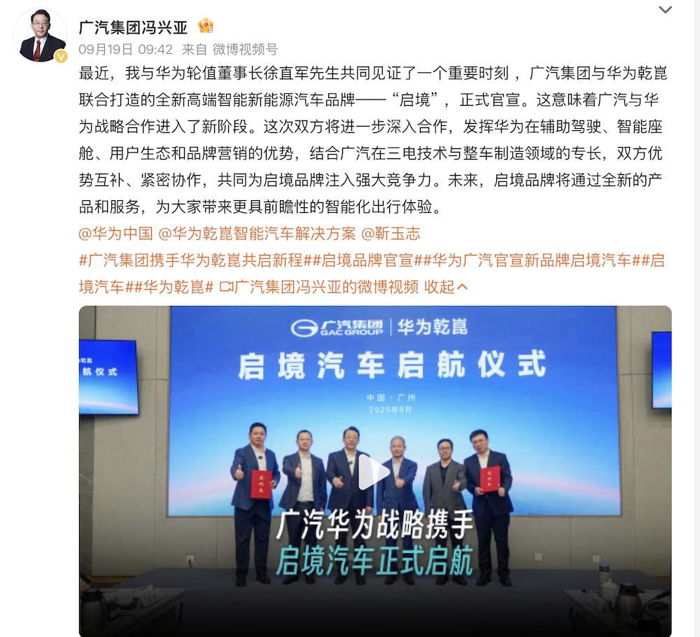 对广汽而言,借助华为在智能化领域的技术与品牌影响力,启境汽车有望成为其高端化与智能化转型的重要抓手。
