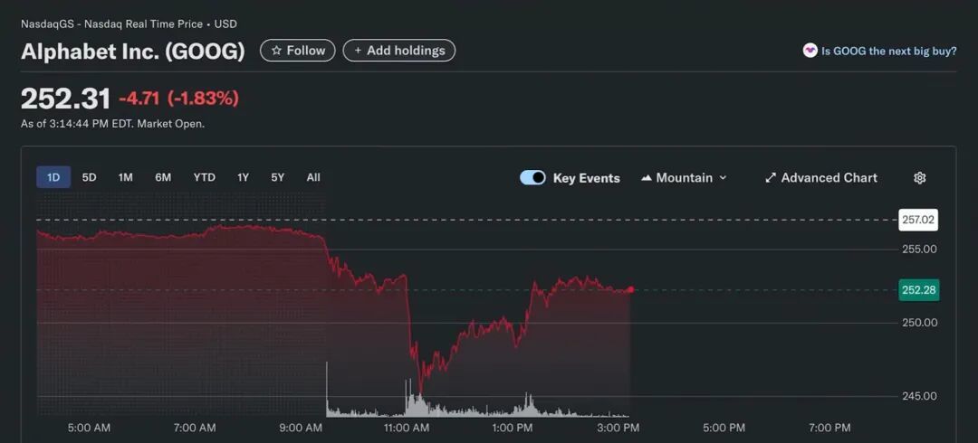 此消息一出,隔壁谷歌的股价,直接被干跌了 3% 。。坏了,这是冲着Chrome来的啊。