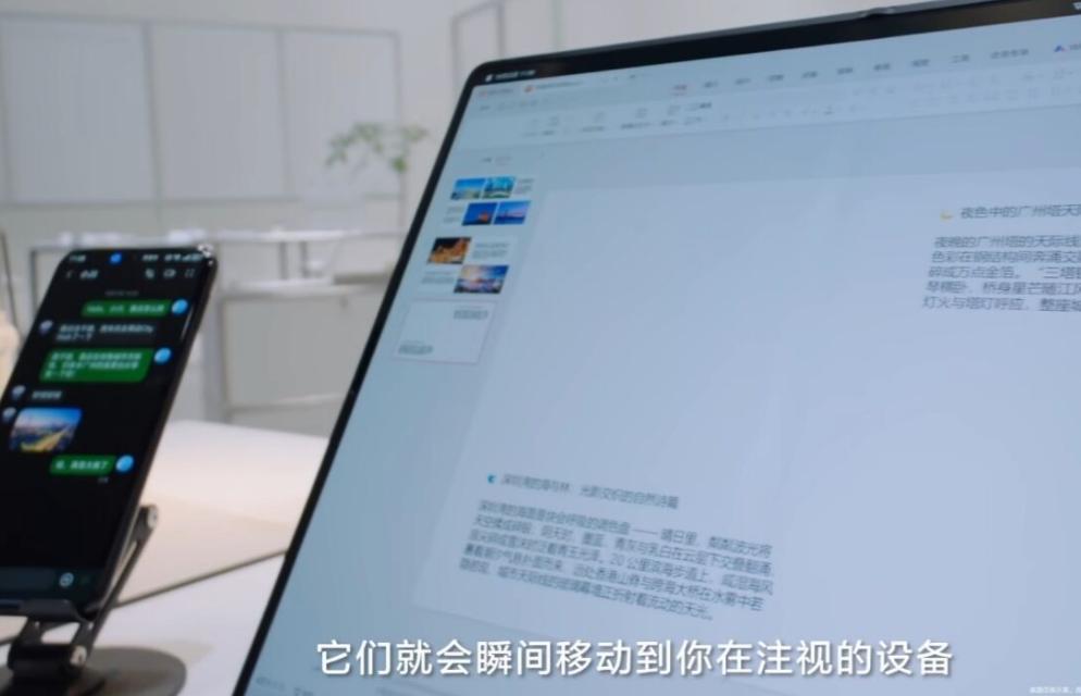 然后是跨设备互传,鸿蒙 6 推出了注视流转功能;