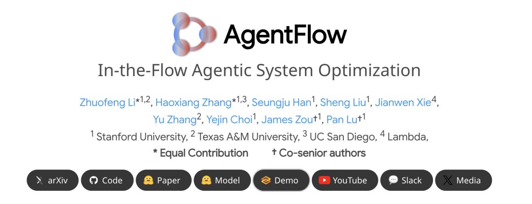 AgentFlow,是一种能够在线优化智能体系统的新范式,可以持续提升智能体系统对于复杂问题的推理能力。