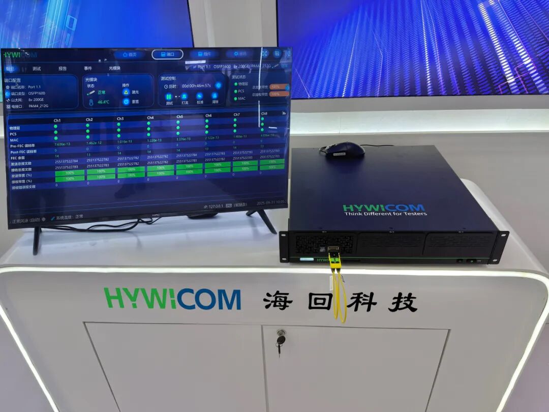 特别需要指出的是,海回科技在本次 CIOE 活动现场,携手 IPEC 国际光电委员会及近 20 家厂商进行 1.6T/800G 光模块测试现场联合展示,其测试设备已成为行业标配 —— 包括合作大量国际客户的诸多光模块厂商,其展台设备均搭载海回测试系统进行联合演示。